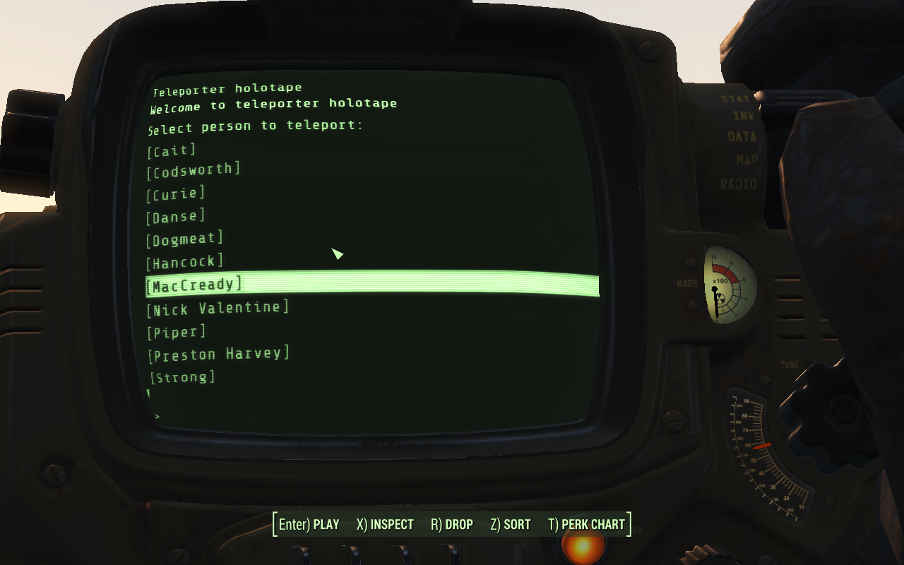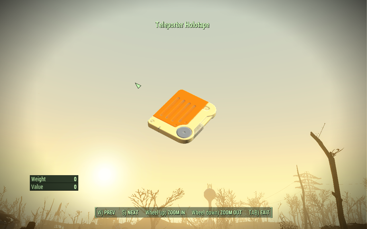 После того, как вы активируете плагин вы получите "Телепорт Holotape" в свой инвентарь.