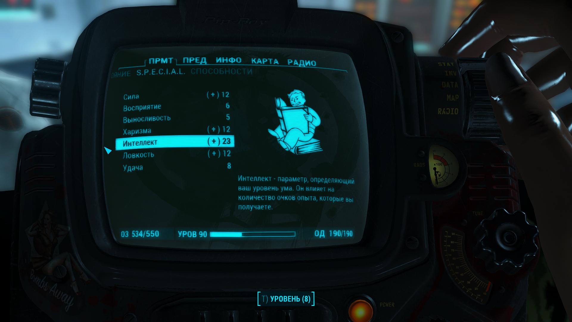 Гайд бестолковый и, даже, вредный. Прибавка к опыту от интеллекта не очень большая, хотя и стабильная. Более быстрая прокачка через перк удачи "Савант" с Интеллектом 1. На 34 уровне берётся "Савант" 3 уровня, Интеллект вкачивается на 10, тогда он работает с "Савантом" + прибавка опыта от Интеллекта. Пример. На 2 уровне берём "Савант" (Удача 5). Выполнив ряд квестов от начального поселения, 4 квеста от Содружества, и квест с принятием в Братство стали, мой герой достиг 25 уровня! Такое же прохождение, но без Саванта, но с Интеллектом 15 позволило достичь лишь 18 уровня. Ощутите разницу.