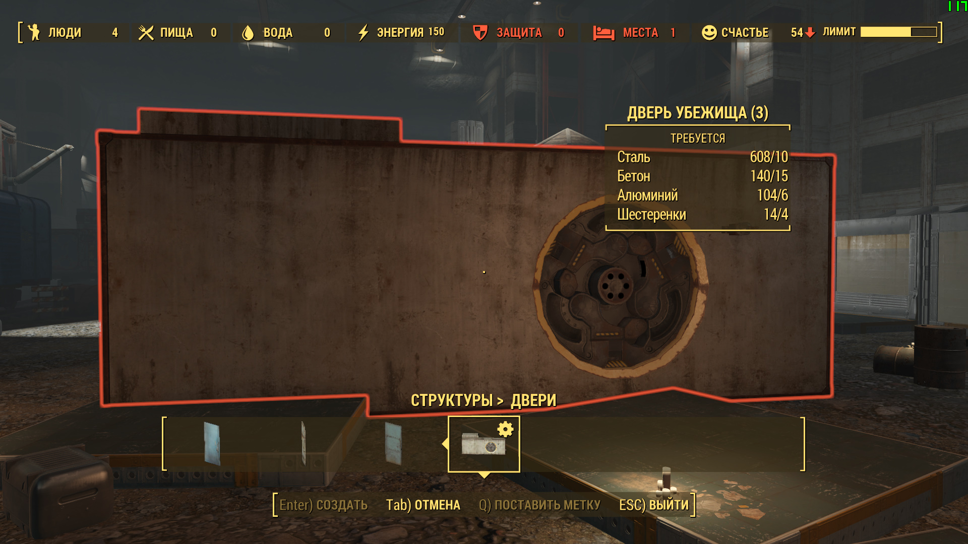 В меню появились некоторые объекты для убежища.