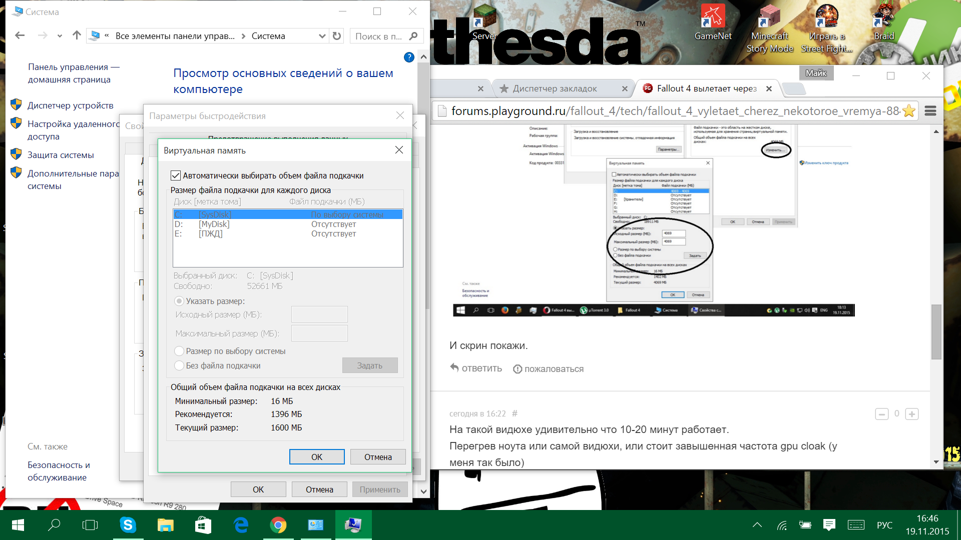Фиксирование размера файла подкачки не устраняет проблему, как и обновление драйвера nvidia