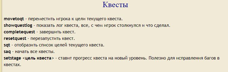 Если читерство тебе не сильно претит, есть код на окончание квеста или определенного задания в нём, сильно выручает в случае бага. По первости часто им пользовался, когда игра только вышла, еще без модов всё через пень колоду шло))