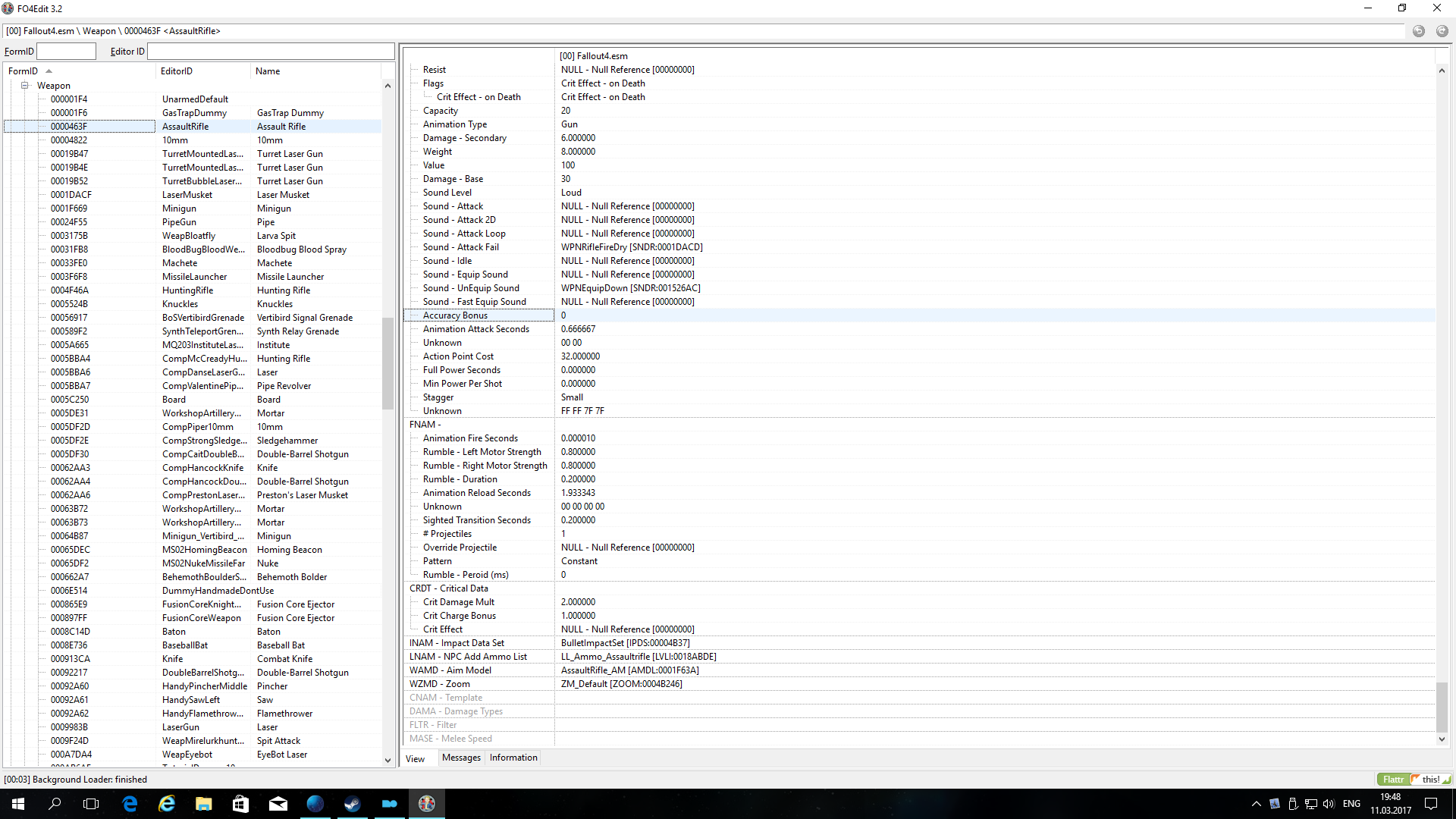 Его изменение отразится в параметрах оружия. Однако это не влияет собсвенно на кучность стрельбы. За последнюю отвечает сразу несколько парметров. При чем они не в оружии (Weapons), а в модификациях - Object Modofication. К тому же на кучность могут влиять замена ствола, замена приклада, замена прицела, наличие насадки на ствол. Все зависит от конкретной реализации оружия. Сумма всех параметров установленных модификаций и дает искомую величину. Но я досконально в это не вникал.