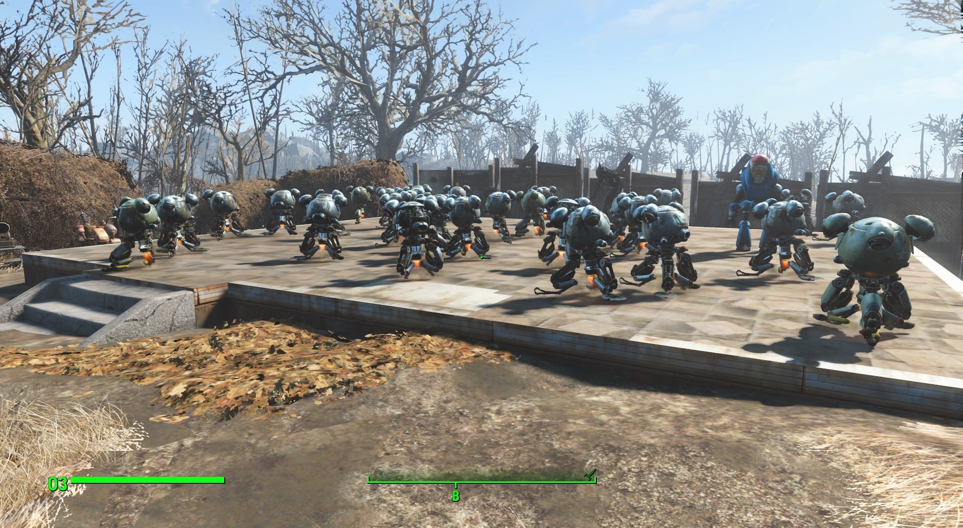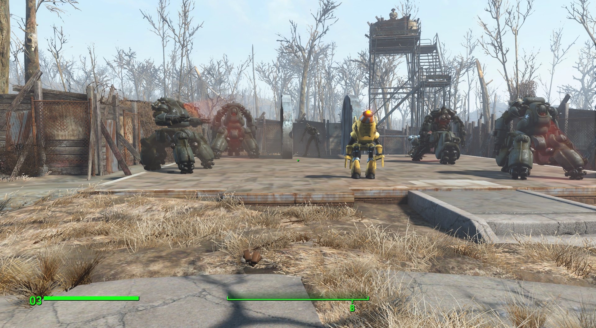Таким образом, практически любого робота можно без проблем привести в поселение и деактивировать, поселенцы не будут их атаковать. Но вот в чём загвоздка, изначальная моя задумка была в том, чтобы не просто складировать этих роботов в одном поселении в деактививированном режиме, а активировать их в определенных местах как дополнительный деф. С некоторыми роботами так прокатило, например с охранниками-аннигиляторами, при их активации они патрулируют небольшой участок возле места их активации, в случае отражения атаки - робот возвращается обратно на свою позицию. Но с большинством нпц так не получается сделать, если их активировать они начинаю возвращаться на свои исходные позиции. Например Сержант, который находится в подвале замка Минитменов из любой точки карты начинает возвращаться в подвал замка и т.д.