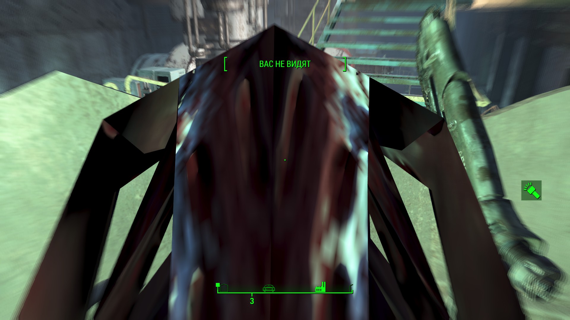 Привет всем, в общем при виде от первого лица в присядке в камеру коцаные текстуры лезут, так же вылезают ребра(?) и красное мясо(?) из ГГ, вроде началось после того как упал сильно или подорвался, но выжил...