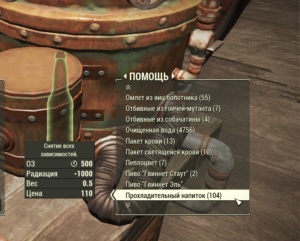 А сами препараты дублируют друг друга. Зависимости снимаются и аддиктолом, и мясом, и напитком. Радиацию убирает и мясо, и антирадин, и напиток. Здоровье восстанавливет все мясо, стимуляторы, напиток. Я уже стимуляторами пользуюсь только когда конечность перебьют, а так жру мясо десятками. Вес увеличивает жареный рад олень (которого можно валить десятками), и все вещества увеличивающие силу. Плюс почти все мясо идет с бонусами, типа повышение восприятия или выносливости.
