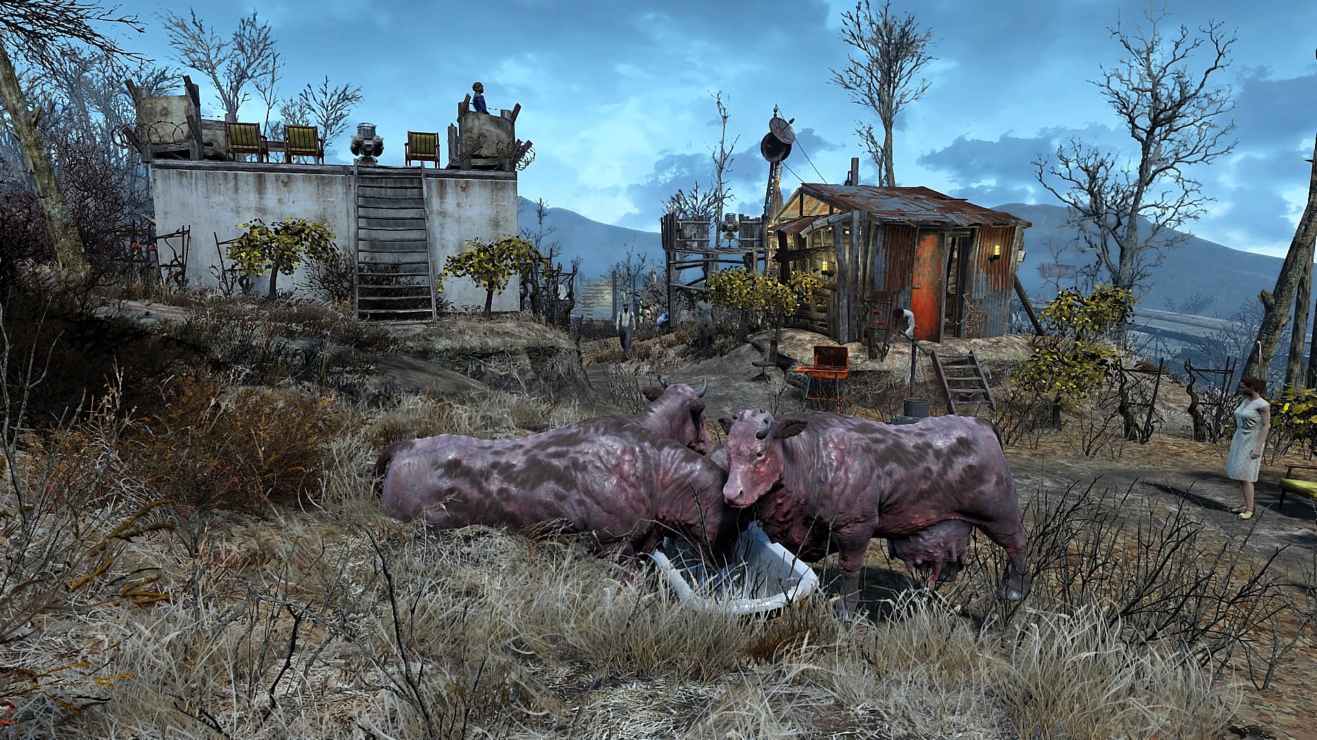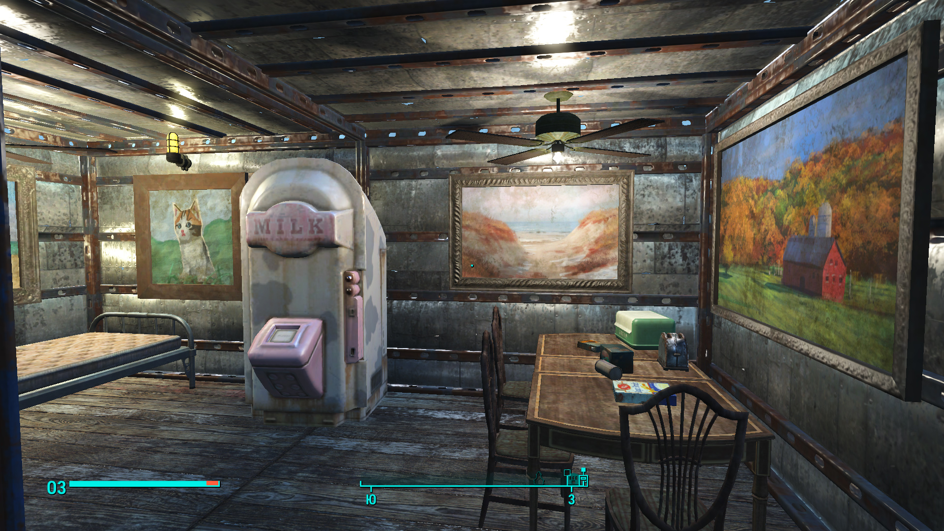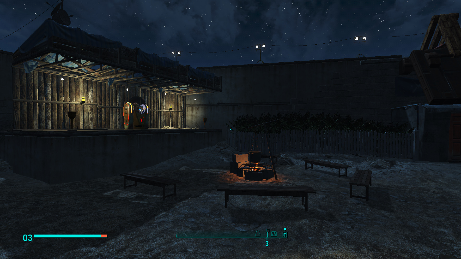 Поселение, где мы впервые встречаем собаку, теплицу с роботами, а также укрепление рейдеров на самом севере, вообще не развиваю. Не вижу смысла, если там нет людей. Пока, по крайней мере. Мало сделал и на ферме, что неподалеку от Сэнкчуари. Остальные места не открыл.
