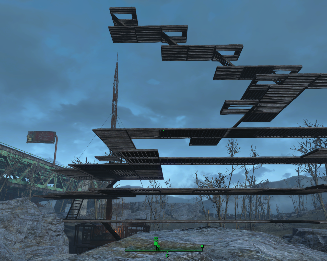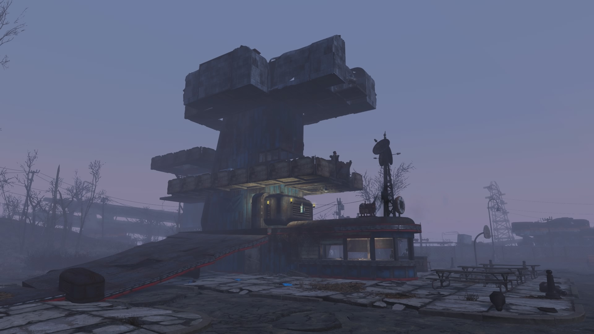 Над замком расположен ресторан радиоактивной кухни "Убежище 111" (ох, сколько народу попадало, забираясь туда...да и плевать)