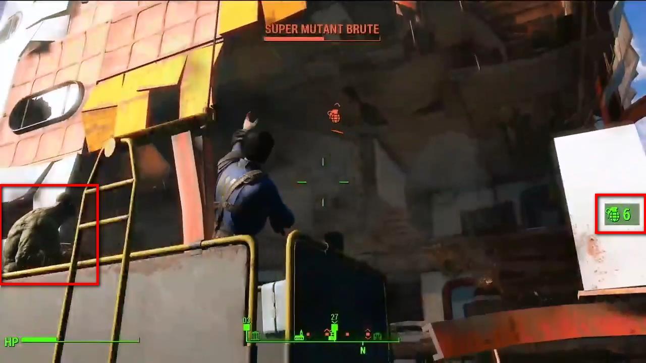 Как минимум в одной миссии героя сопровождает союзник-супермутант. Также можно заметить счётчик гранат. Возможно, гранаты перестанут быть полноценным оружием и станут элементом поддержки, прямо как в шутерах.