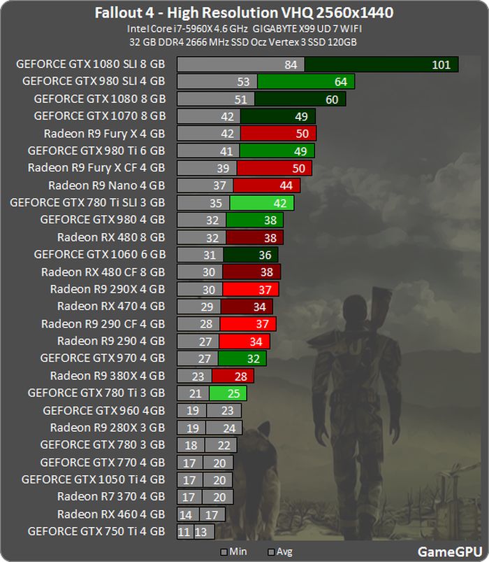При данных настройках приемлемый показатель FPS показали видеокарты уровня Radeon R9 Fury X или GeForce GTX 1080.