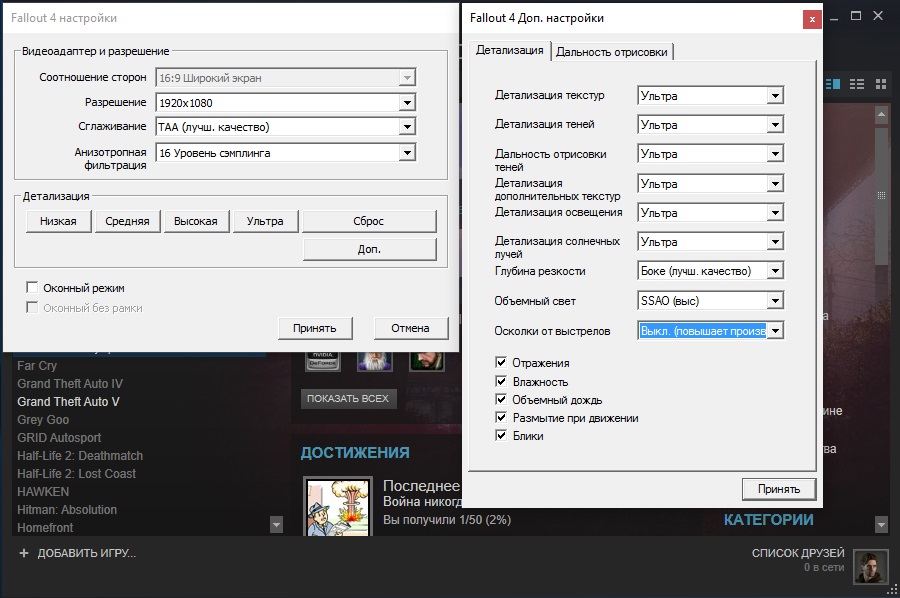 При данных настройках приемлемый показатель FPS показали видеокарты уровня Radeon R7 370 или GeForce GTX 670. Оптимальными решениями станут Radeon HD 7950 или GeForce GTX 680.