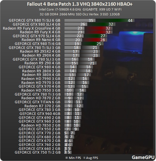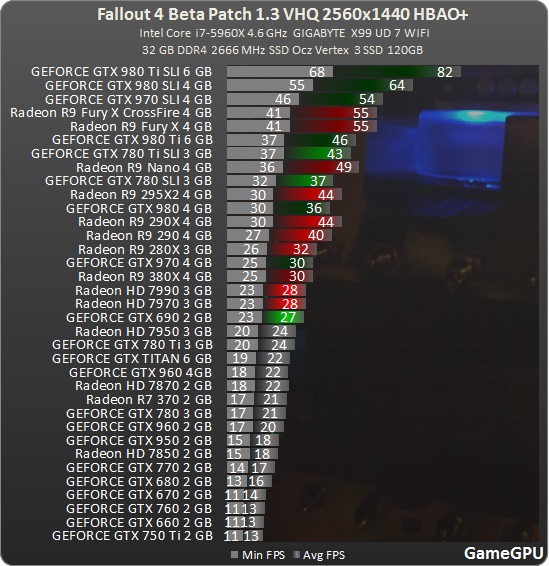 В конце прошлой недели Bethesda представила BETA-патч к игре Fallout 4. Среди обновлений для Fallout 4 – поддержка двух технологий NVIDIA GayWorks: NVIDIA FleX и NVIDIA HBAO+. Они дополнили присутствующую в игре с момента выхода технологию NVIDIA Volumetric Lighting. О чем можно говорить, когда 280X рвет 780 Ti и Titan? А GTX 950 топовую 680? Слава NVIDEA! Петушки и дальше будут говорить о том, что Nvidea не убивает старое поколение.