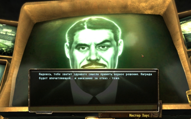 "Этот мод позволяет пройти момент квеста "Казино всегда в выигрыше V" мирным путём, когда мистер Хаус требует уничтожить Братство Стали. Мод добавляет ветку диалога, убедив мистера Хауса оставить братство.