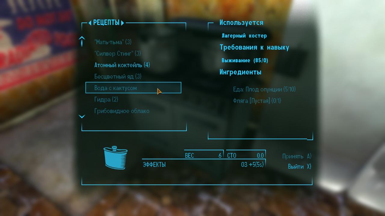 На костре вы можете приготовить ореховый кофе (кстати, с очень неплохими качествами) или кактусовую воду (можно использовать 1 раз).