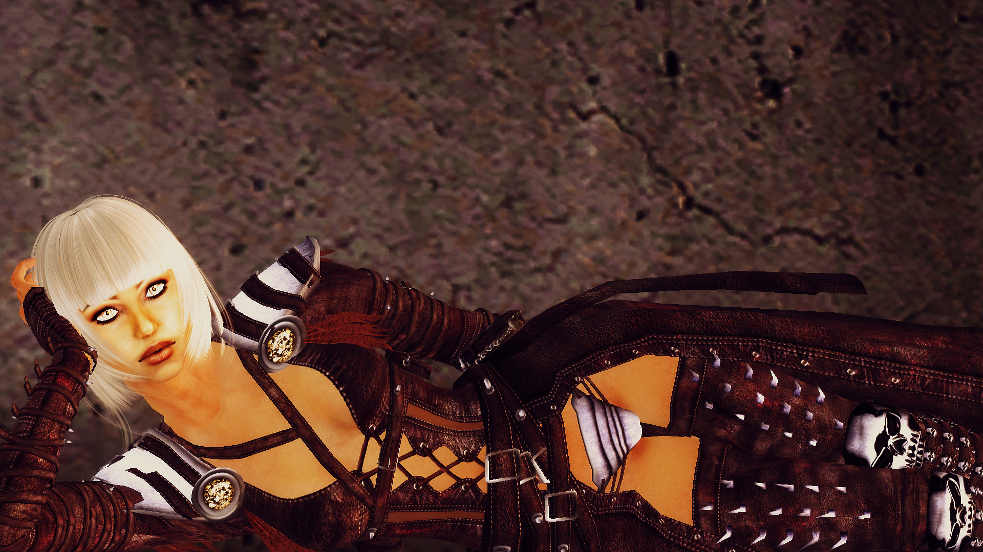 This is an original creation from myself , no game or other resources were responsible for the inspirations i had for this armor. This whas created once for Second Life and build up primitive by primitive right out of my head. I wished for a long time to have some of my armors in Fallout , finaly my wish came out and you can wear from now one of my creations in Fallout New Vegas. I am so greatfull and proud that Riven1978 took his time and huge ammount of effort to create the meshes for this outfit. As i am such a noob in that , second life had a different way for creating clothes. This is an very detailed armor piece in HQ textures and normal maps and i do not know how it will run on a low grafic performens pc. But there is a choice of texture set in 2048x2048 and 1024x1024 For lore friendly players...yes i know she got no pants on....is all about the tactics misleading Fiends and the Powedergangers with it. Realy it works, you need to try it out... You can find Ravishing Sin at the cementary Goodsprings