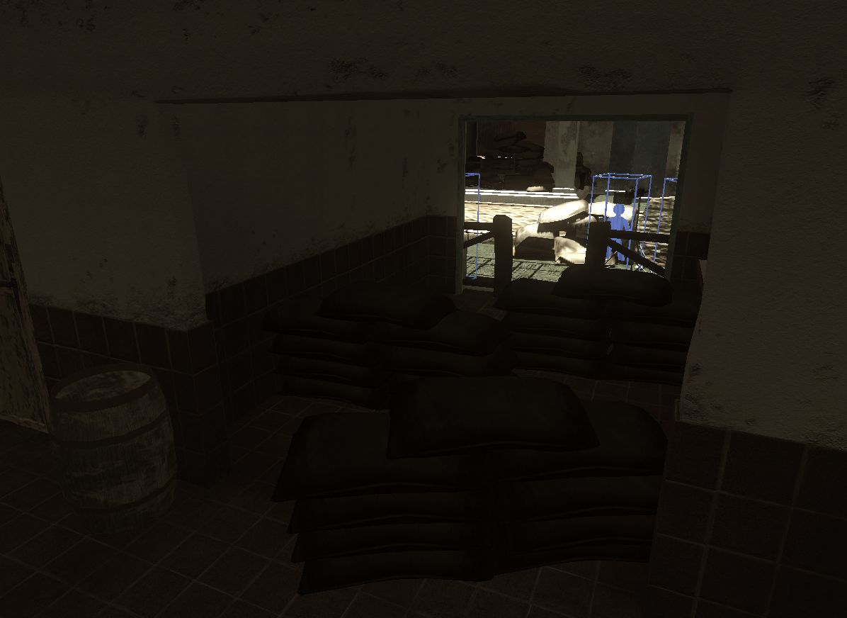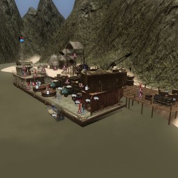 База ОФОТ расположена на острове, с "остатком" стены от форта, лагерь расположен компактно, и защищен, что называется плохо. Есть пару мест ля снайперов на этом малом клаптике суши пару хороших снайперских позиций. Могут быть использованы как обороняющимися, так и наступающими.
