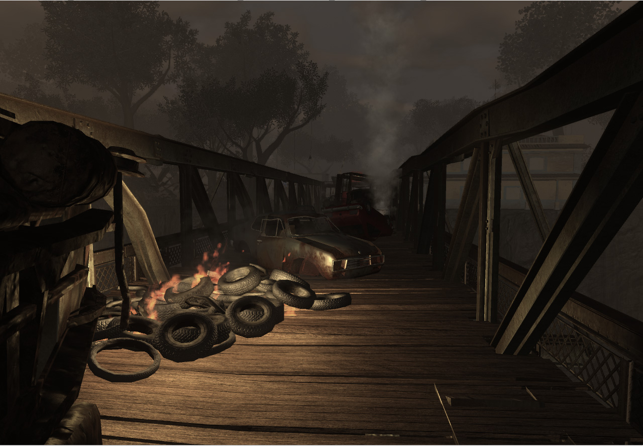 В общих чертах: Небольшое игровое поле представлено мостом через каньйон. Мост это кордон между ОФОТ и СНС который частично разрушен вследствии теракта. На мосту много разрушеной, рабочей (но поездить не выйдет) техники... Всё остальное увидите сами. Подходит для всех режимов игры.