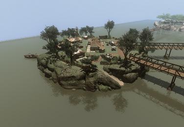 Острова крутые и просто так на них не забраться. На каждом угловом острове на тыловой части есть спуск к воде и пристань с большой лодкой вооруженной пулеметом. На фронтальной части есть еще по четыре спуска. Центральный остров имеет восемь спусков к воде, но не имеет пристани с лодкой.