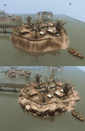 Спасибо за позитивный отзыв, а то я думал здесь все повымерли. Фарик не Крайзис, скудный ассортимент тестур, на одну карту разрешено ставить четыре текстуры максимум. Да еще при растяжении террейна по вертикали, текстуры тоже растягиваются, и если остров с высокими крутыми берегами, то образуются тянутые текстурки земли на крутой части берега.
