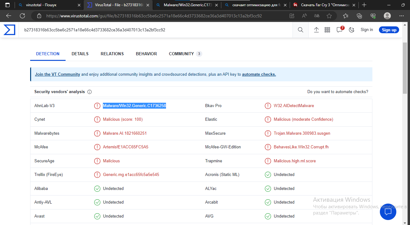 На ВирусТотал показивает что оно с Вирусом, не качайте!!!
