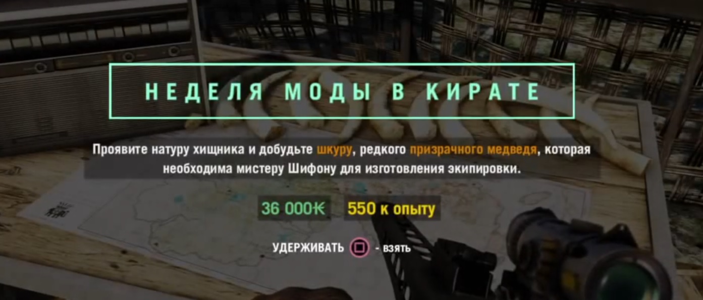 В серии заданий "Неделя моды в Кирате" нужно добыть шкуру редкого Призрачного Медведя: