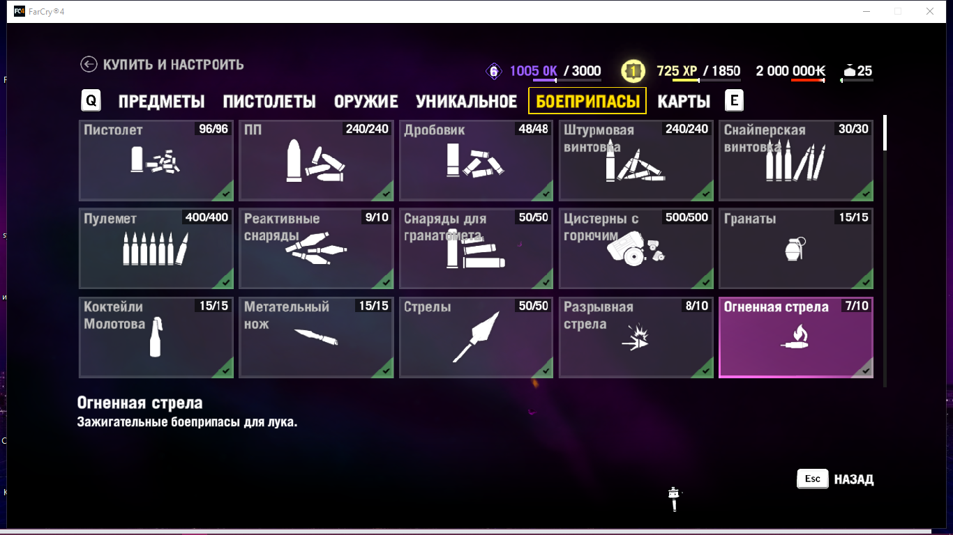 /для их открытия. Оружие открылось, но теперь я не могу купить стрелы, аптечки и бронежилет. Просто стоят галочки на них всегда. Может кто-то подскажет как выйти из данной ситуации, намекнет хоть?
