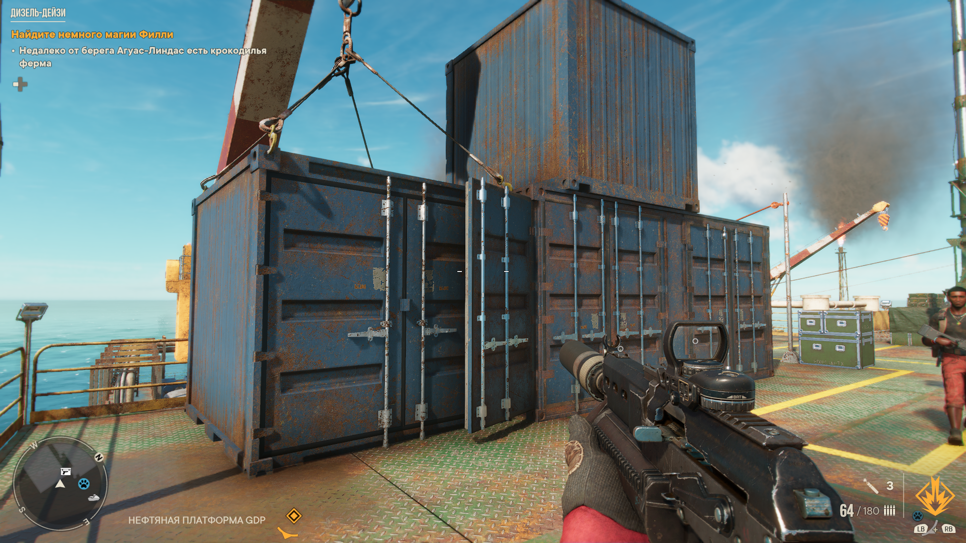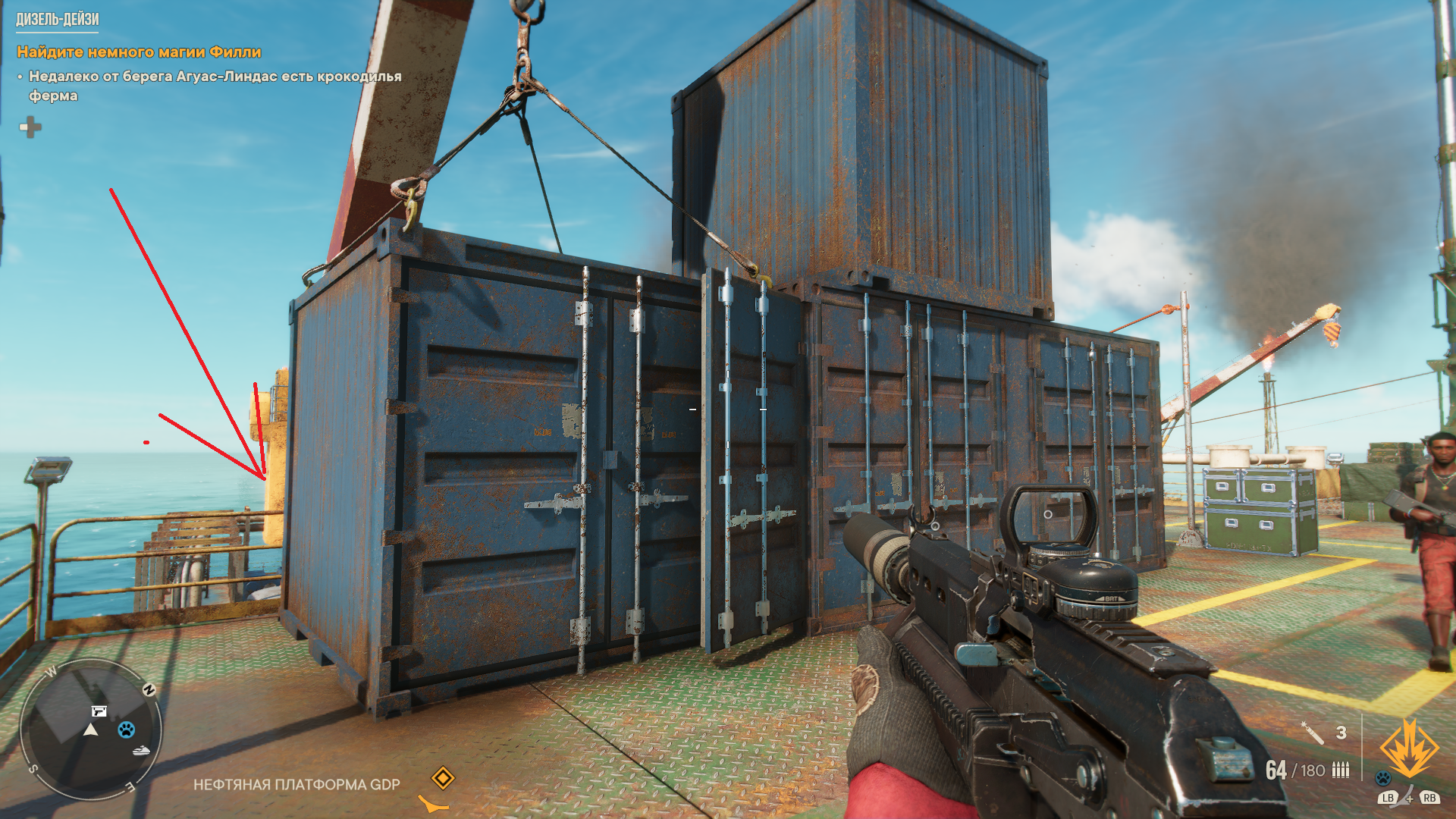 не нашел кнопок управления краном, бомбил и ракетами и динамитом, как полутать тот ящик?