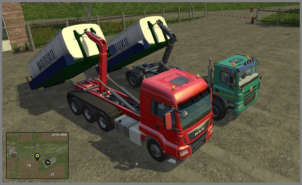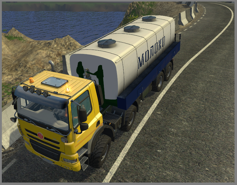 Вместимость цистерны 23000 литров, есть анимация открывания крышек, принудительный слив содержимого на землю, пачкается.