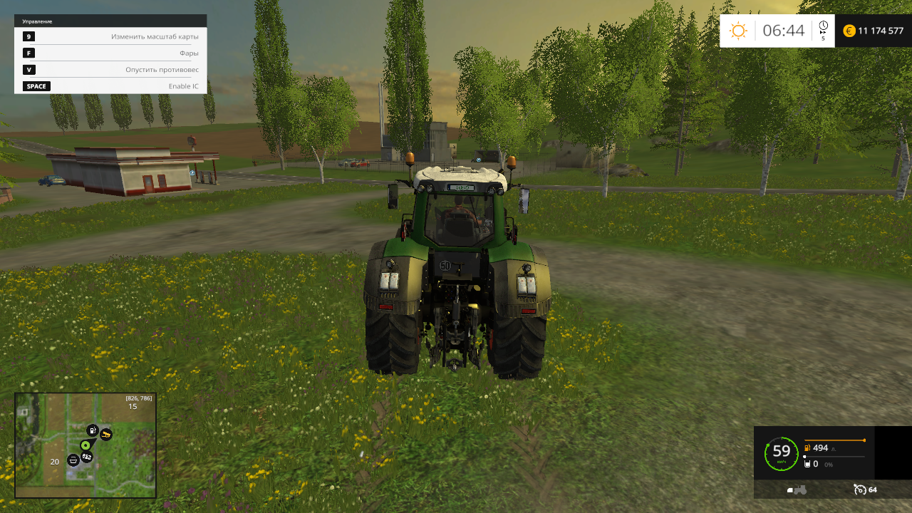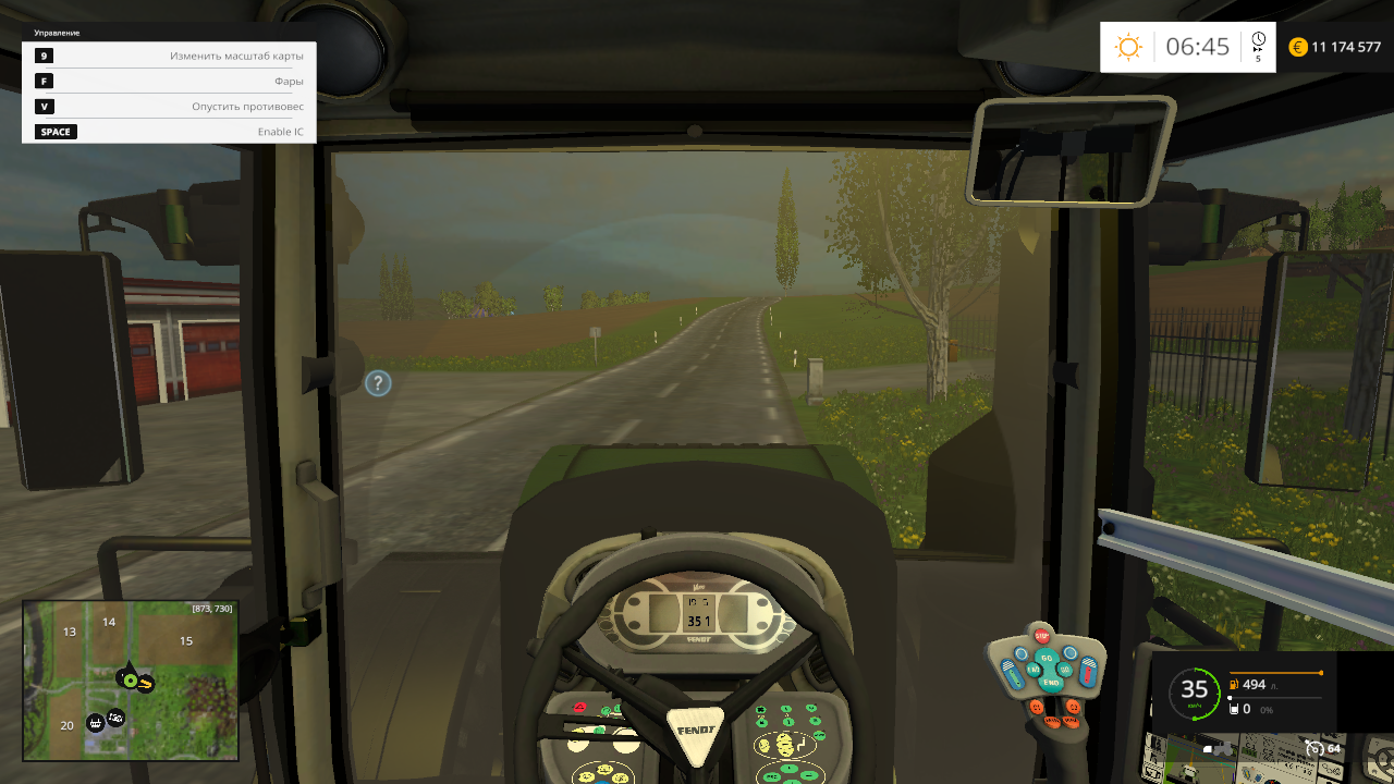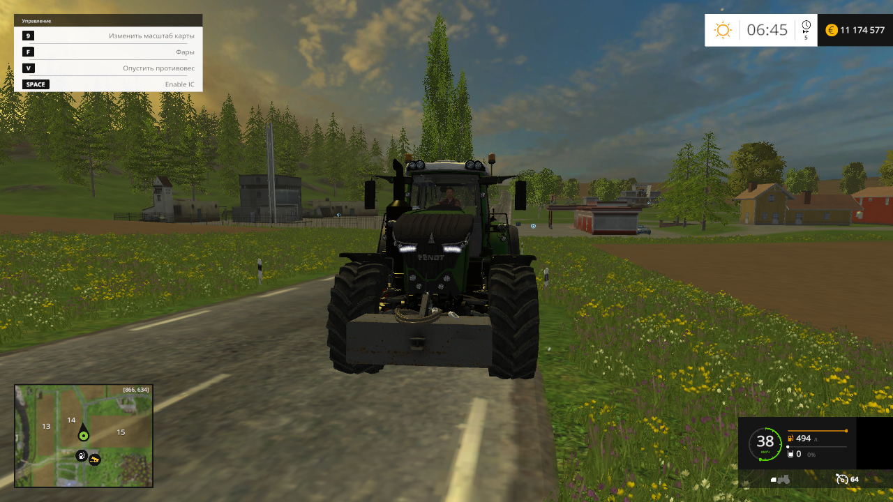 Мощность: 500 л/с , скорость: 63 км/ч . IC (левая дверь ,заднее окно, люк ,передняя навеска ,габаритные щитки); светотехника,подсветка, эл. спидометр и тахометр, зеркала ,задние догружатели, покупаемый противовес ,плугмод ,колёсная пыль, дорожные следы, анимация джойстика, убираются передние болотники .