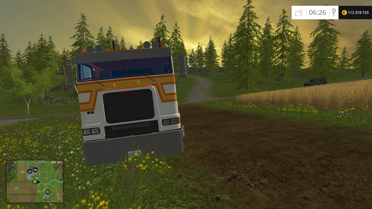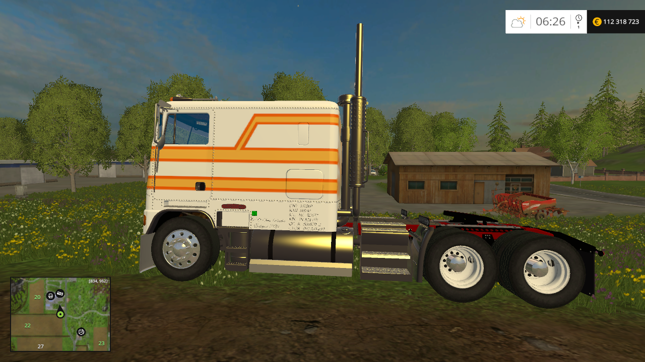 Мощность: 550 л/с, скорость : 130 км/ч. Светотехника, рабочая приборная панель и зеркала, анимация рук фермера, подключаемый моторный замедлитель(два режима - слабый и сильный), оставляет следы, пыль из под колес.