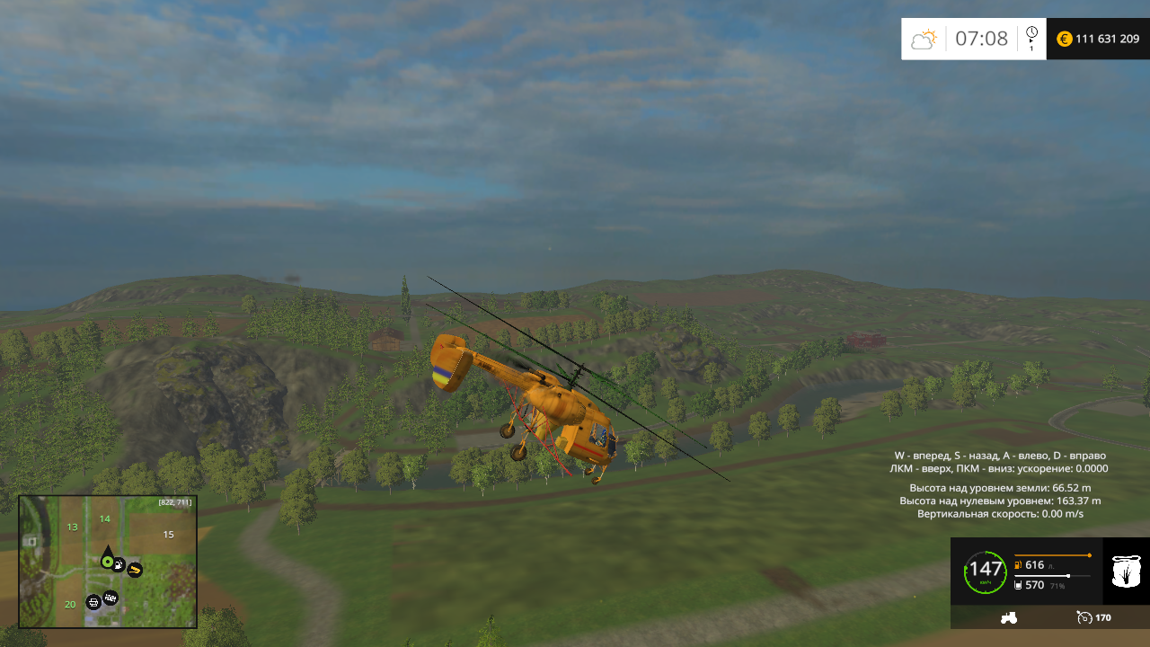 Вертолёт Ka 26СХ .Мощность: 650 л/с,скорость: 150 км/ч. Сельскохозяйственная модификация многоцелевого двухмоторного народнохозяйственного вертолета. Предназначен для обработки сельскохозяйственных культур ядохимикатами и внесения в почву минеральных удобрений. Вместимость бака для удобрений 800 л.