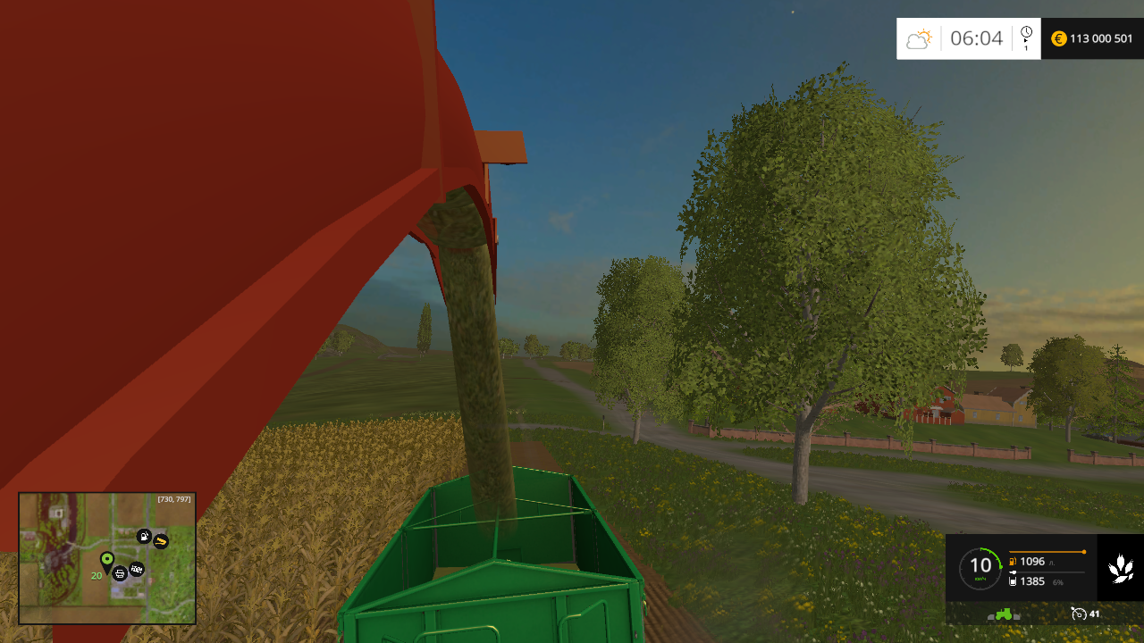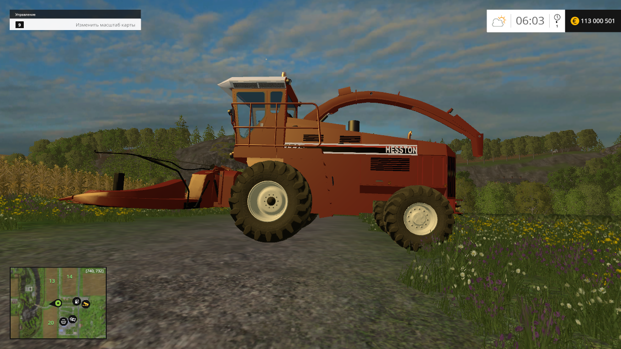 Мощность 325л/с ,cкорость 41 км/ч. Светотехника, рабочие зеркала, анимация рук фермера, прицепное устройство, оставляет следы, пыль из под колес. В комплекте жатка(моющаяся). Рабочая ширина: 6 м. Убирает: кукурузу, пшеницу, ячмень на силос.