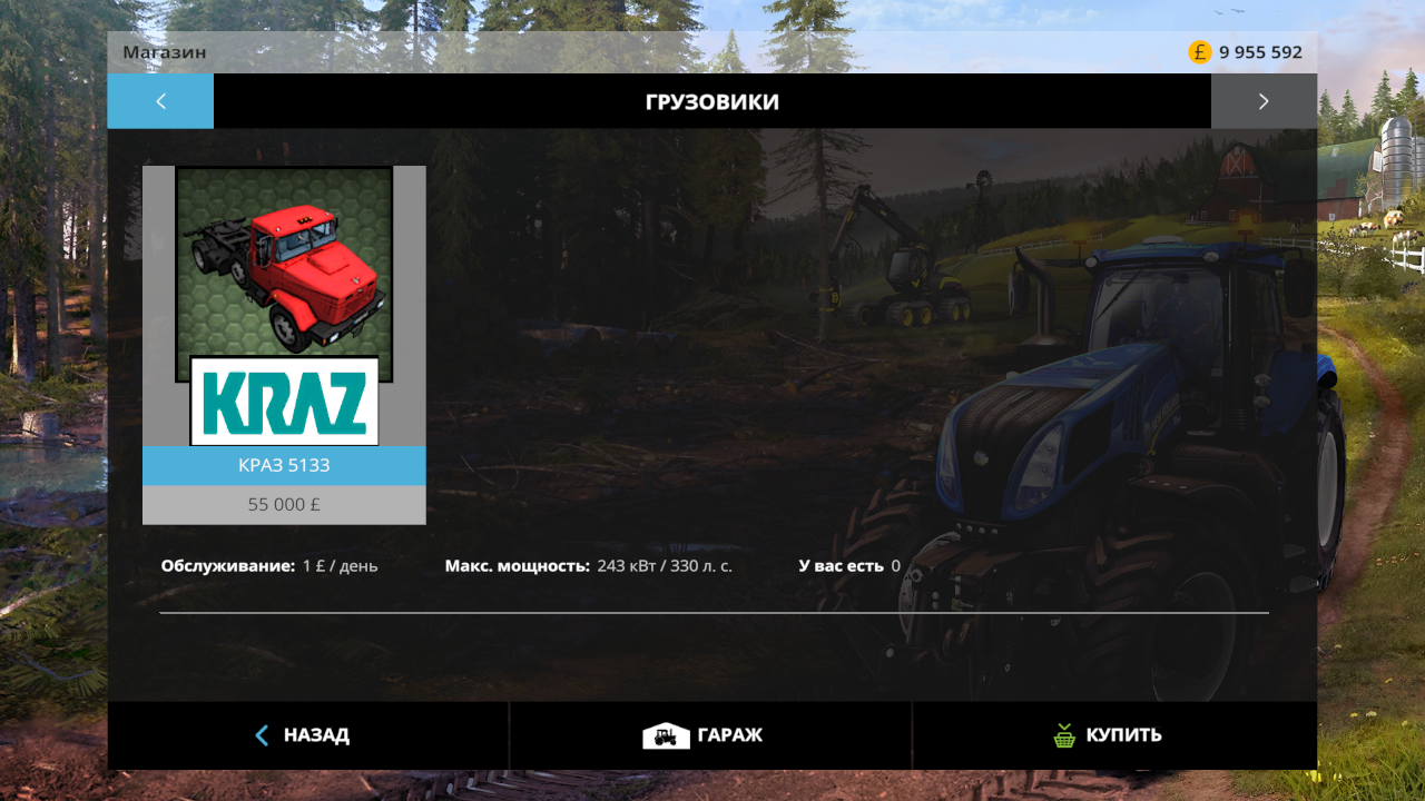 Седельный тягач КрАЗ 5133- 330 л/с , скорость 61 км/ч ..Светотехника ,поворотники ,проблесковые маячки, колёсная пыль, следы, рабочие приборы, зеркала , пачкается, выбор цвета, новый водитель.