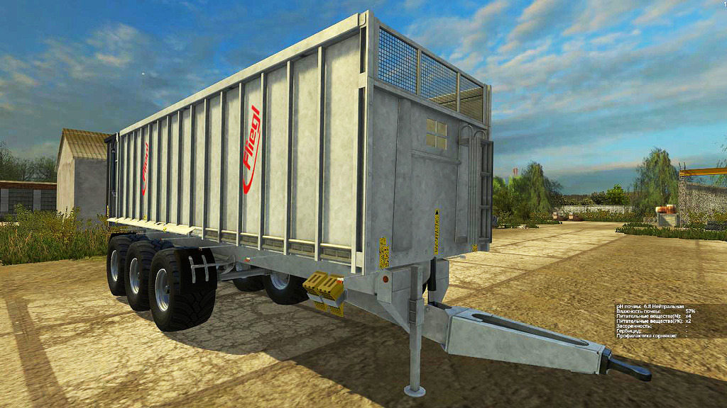 Трехосный самосвальный прицеп, объем: 42000 л. Перевозит стандартные культуры + кормовую кукурузу, силос, солому, навоз, фураж, траву, древесную стружку. Первая и третья оси поворотные, башмаки, регулировка дышла (ЛКМ), светотехника, моющийся.