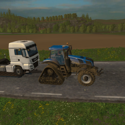 Трал для транспортировки техники, сельхоз инвентаря и т.д. Светотехника, опускается рампа, фиксация груза, оставляет следы, пыль из под колес. Моющийся.