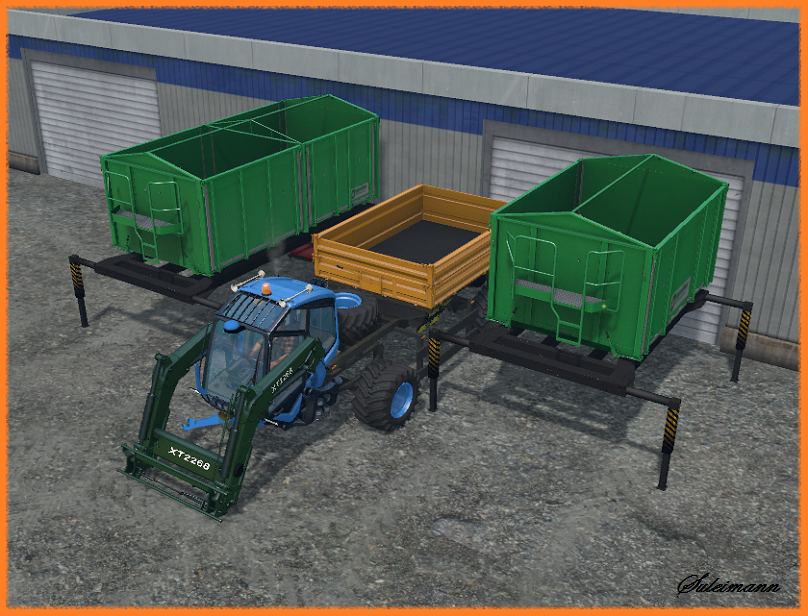 Vychuchol - доработал текстуры и сделал их пачкающимися для для шасси XT2268, грузового модуля (7500 л.) и фронтального погрузчика, добавил анимированного фермера (подвижные руки), изменил текстуры внутри кабины, исправил опоры (раздвинул) у грузового модуля (7500л.), сделал возможность выбора цвета при покупке и заменил иконки техники в магазине.