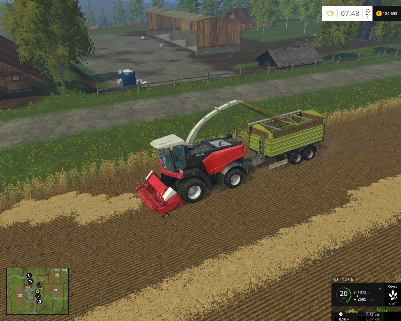 Да, солому надо сначала измельчать, потом сечку - в данном случае измельчённую солому везут на силосную яму, трамбуют, накрывают и после получают силос. Прицеп подойдёт любой, но нужен измельчитель, по дефолту это KRONE BIG X 1100 с подборщиком EASYFLOW 300. В ДЛЦ ещё есть RSM 1403 с FOR UP 370, и FR 850 с 300 FP.