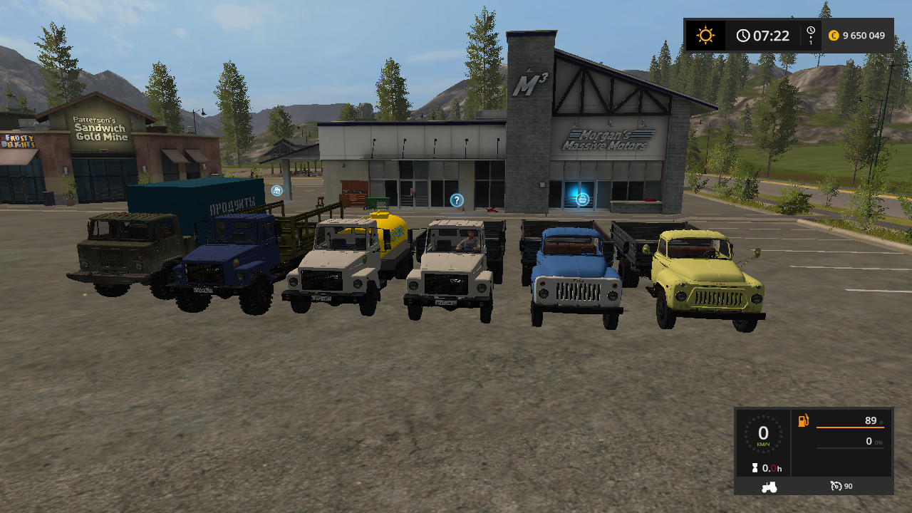 В пак входят шесть грузовиков Горьковского автомобильного завода (ГАЗ). На всех грузовиках анмирована приборная панель, карданные валы, зеркала, выбор цвета, колёс и дизайна при покупке. Светотехника, моющиеся. Лог чистый!