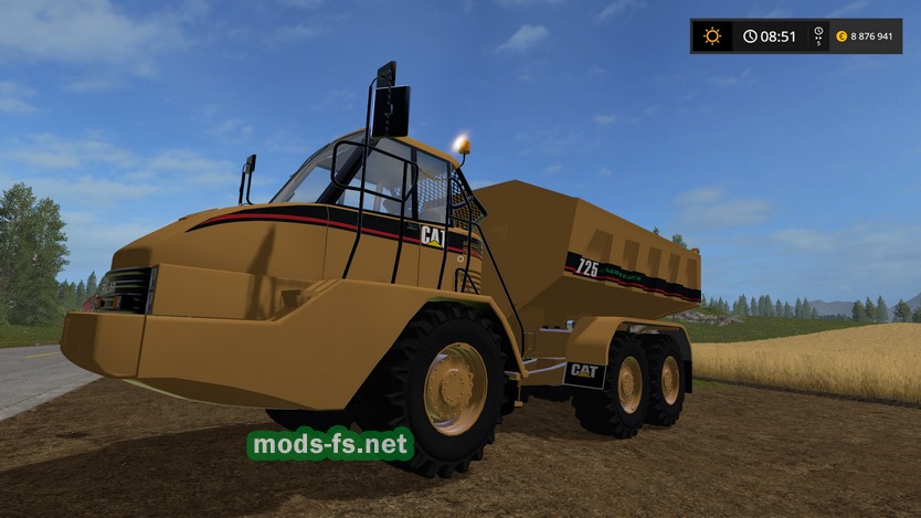 Установи Caterpillar 725A, просто скачав мод Фермер Симулятор 2017 с нашего сайта – и твоя ферма пополнится громадным самосвалом Caterpillar. Ключевое слово здесь «громадный», ведь машинка создавалась специально для работы в карьере.