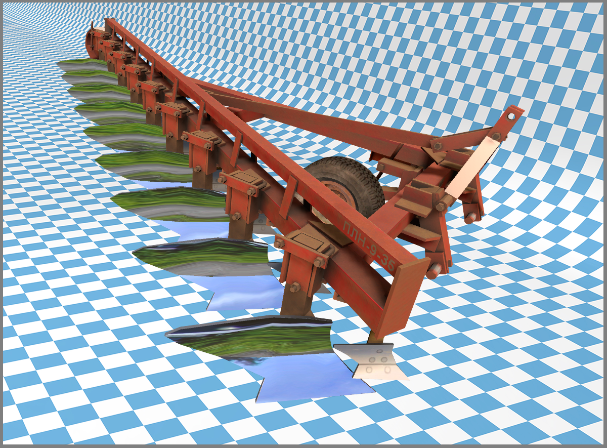 В процессе работы есть анимация земли и пыли, так же плуг пачкается и его можно мыть.