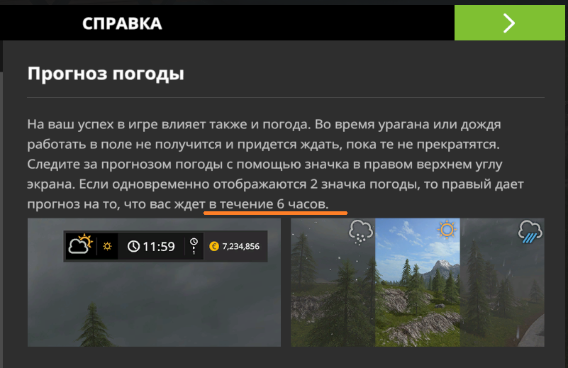 Там же где показывается погода на текущий игровой день, показывается и погода на следующий игровой день. Если ожидается смена погоды, если не ожидается то не показывается.