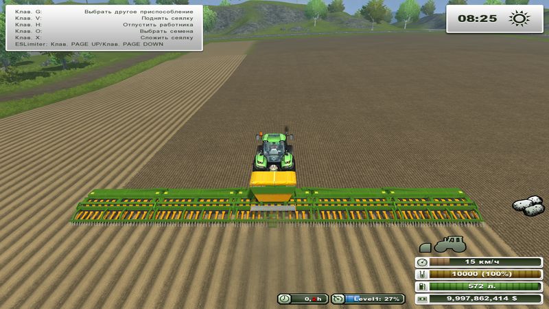 Сеет: пшеницу, ячмень, рапс, кукурузу, траву, картофель, сахарную свеклу.