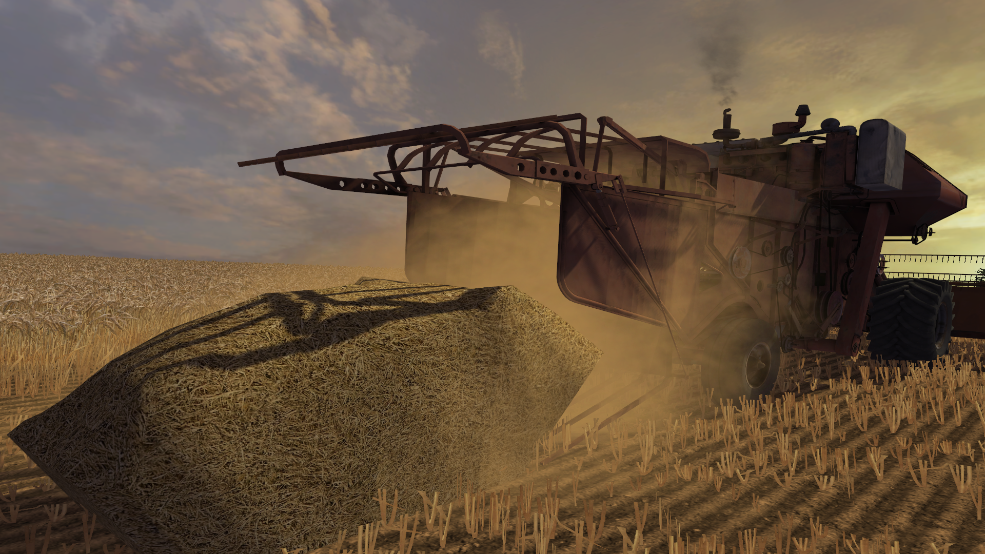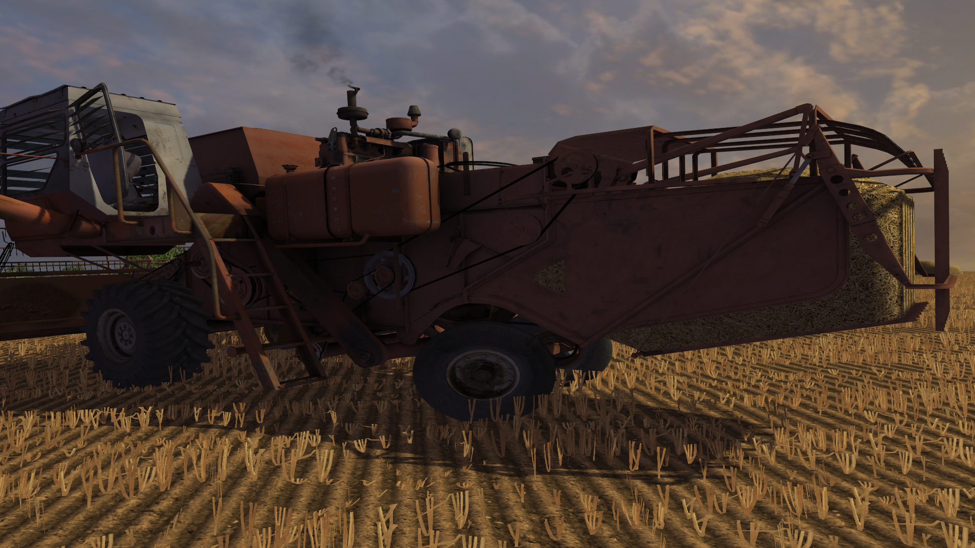 Копнитель: Запускается вместе с молотилкой комбайна, копну сбрасывает автоматически. Анимирован механизм соломонабивателя, сброса копны. Копна с копнителя грузится любыми стандартными вилами для тюков, поскольку имеет нестандартную форму, что затрудняет ее погрузку на прицеп, — было решено реализовать ее конвертирование в солому при погрузке на прицеп 2ПТС-4 в первом режиме работы прицепа.