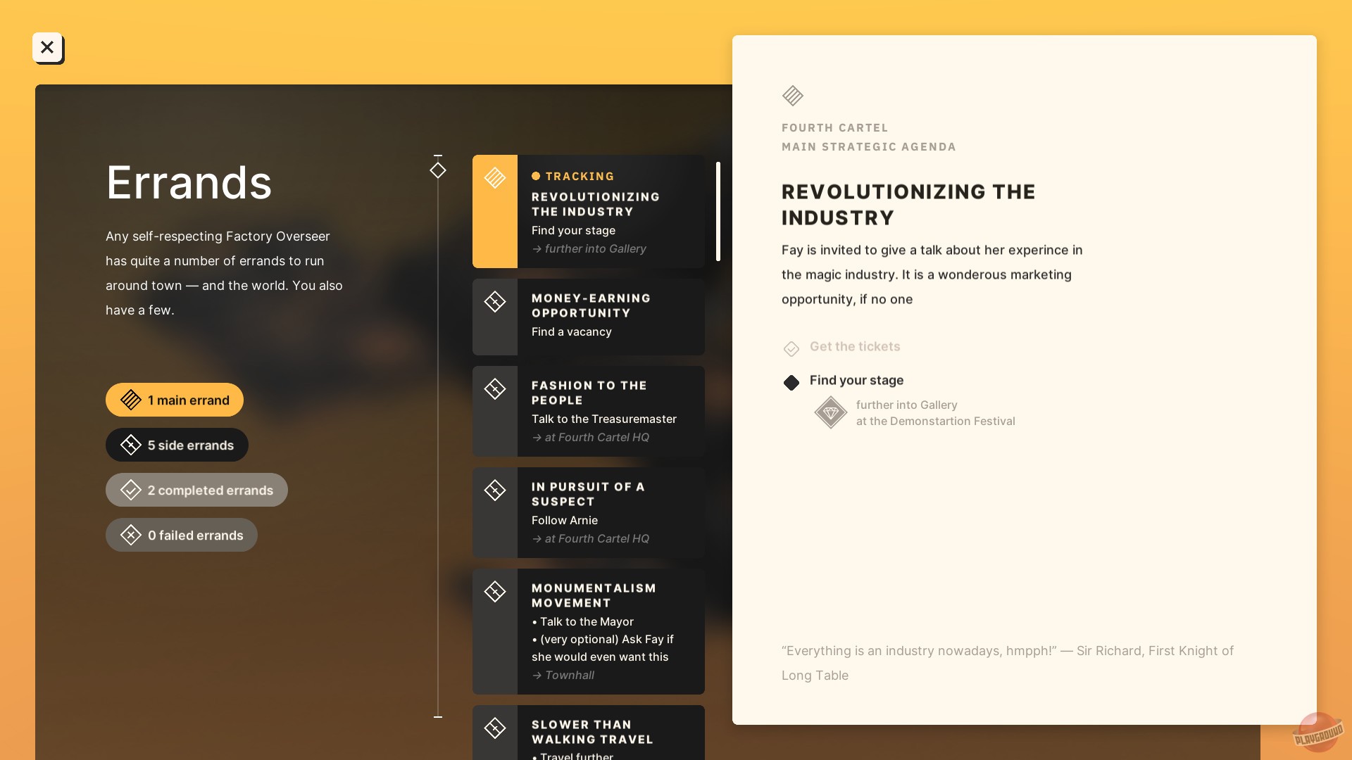 Fay's Factory приглашает вас в мир, охваченный магической промышленной революцией. Вы выступаете в роли смотрителя парящей в небесах фабрики заклинаний. Ваша задача — управлять производством магических формул и вступать в дуэли, путешествуя по Сотне Королевств.