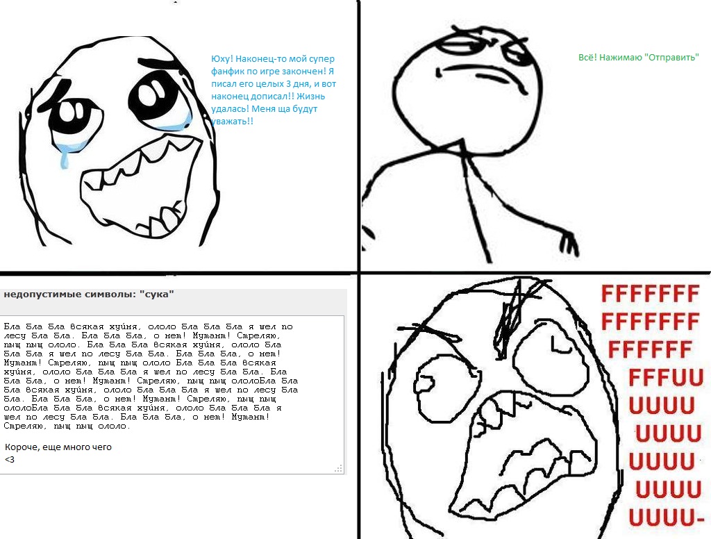 Только что написал обзор на третий F.e.a.r. довольно большой. Писал прямо в поле заполнения, а не в ворде, забыл предварительно забекапить текст. А в тексте была пара выражений, не особо матерных вообще-то. Но антимат Playground'a их таковыми не посчитал и при сохранении выдал мне это. В итоге текст пох***ся. Твари паскудные, кто за это отвественнен. Are you out of your fuking mind? Die, you sons of bitchies, stupid cunts, dirty lame buggers. Nature's mistakes, bunch of shitheads!!!