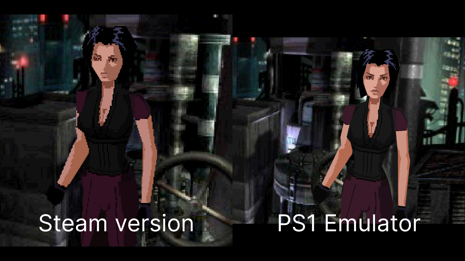 Либо делаешь ремастер, где хотя бы бэкграунды прогоняешь через нейросеть (ну чтобы они не были 320x240 как на PS1), а всё трёхмерное рендерим в нативном разрешении. Правда, тут непонятно, что делать с пререндеренными катсценами, но не суть.