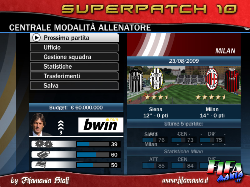 Парни с FifaMania выпустили свой очередной FifaMania Superpatch, уже для FIFA 10. Этот патч обновляет итальянскую Серию А и Серию Б, а также добавляет оригинальные турниры Лиги Чемпионов и Чемпионата Мира 2010.