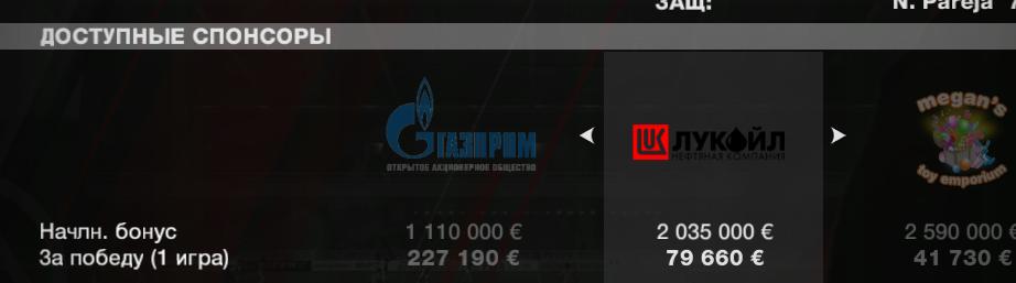 Спонсоры Газпром и Лукойл в игре при выборе спонсоров!
