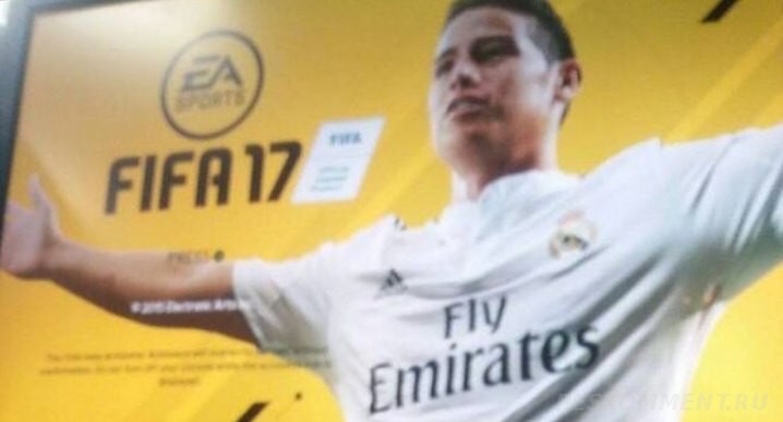 Как мы видим на скриншоте изображена главная заставка игры FIFA 17, которая выполнена в желтых цветах с черной надписью самой игры, а главным лицом является Хамес Родригес. Судя по утечки это произошло прямо из студии, где разрабатывают новую версию футбольного симулятора. Возможно кто то тайно снял на телефон данную заставку и выложил скрин в социальные сети, а дальше это распространилось по всей сети.