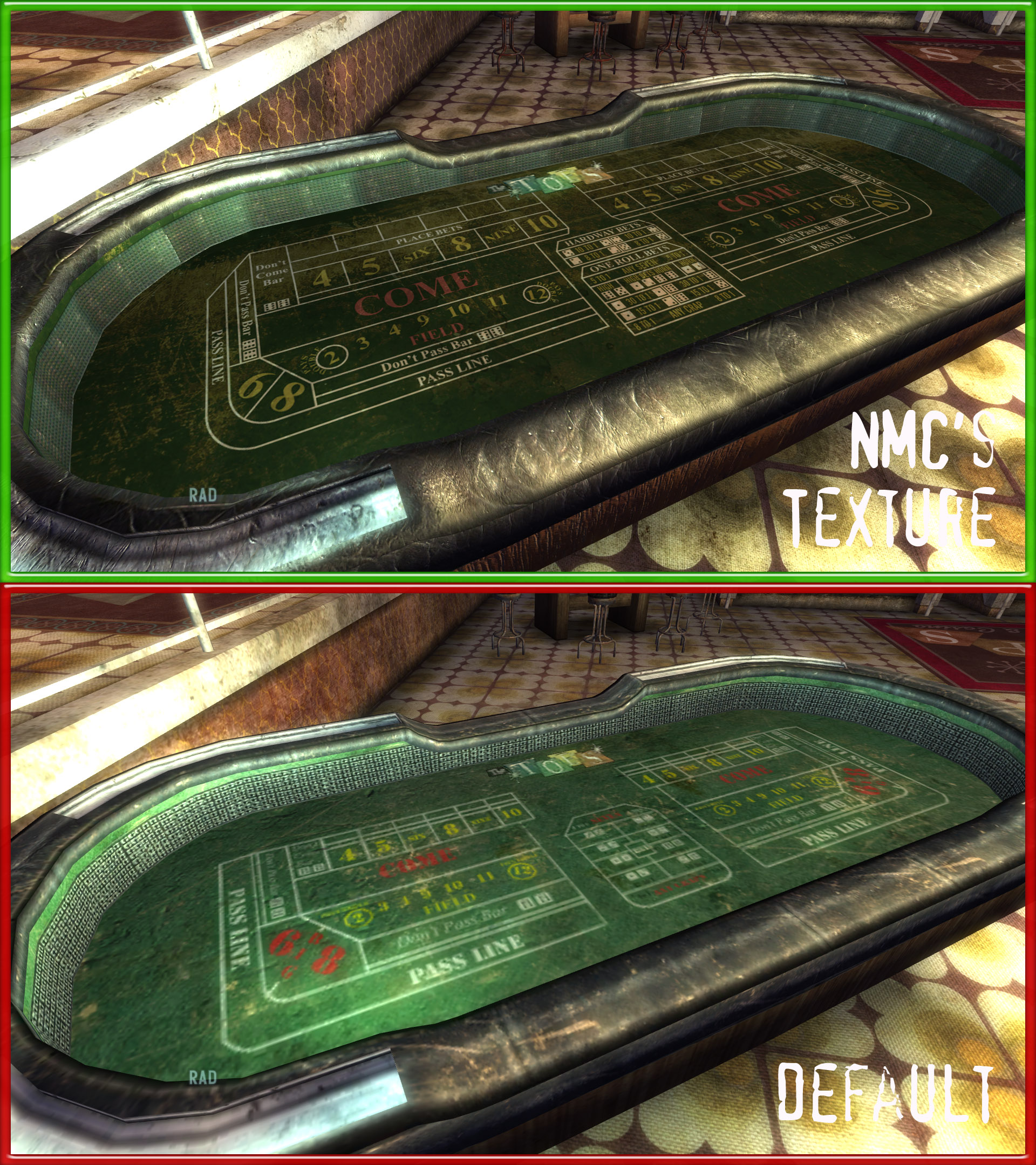Описание: Любители Fallout 3 наверняка помнят самый качественный и полный сборник текстур для нее, под названием NMCs Texture Pack, преображающий игру в хорошем смысле этого слова. Долгое время для Fallout New Vegas можно было использовать только часть текстур из того сборника, те текстуры, которые совпадали у обеих игр. Но недавно NMC порадовал фанатов выпуском сборника текстур изначально созданного и предназначенного для Fallout New Vegas. В него, конечно, вошли и старые текстуры, созданные еще для F3, но, также, огромное количество новых, ранее нигде не выложенных текстур именно для FNV.