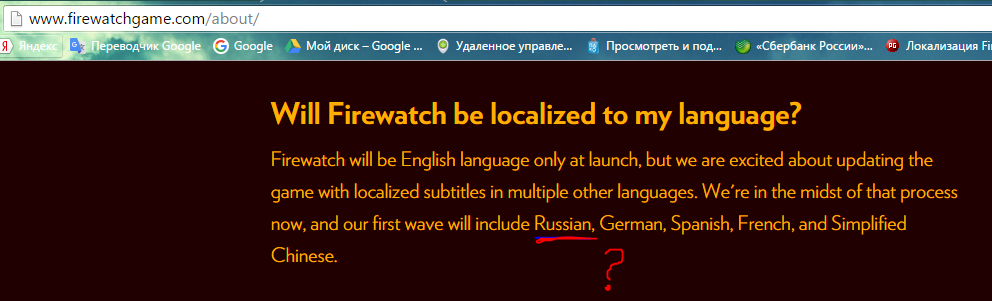 Я качнул Firewatch всем известным способом. После пяти минут игры я понял, что она мне нравиться и тут же купил на ps4, после запуская понял, что там совсем нет Русского языка. Моему удивлению и разочарованию не было предела, ведь сказали что Русский язык будет, так где он? Не уж то только для ПС локализировали. У кого есть какие сведения по поводу такой ситуации?